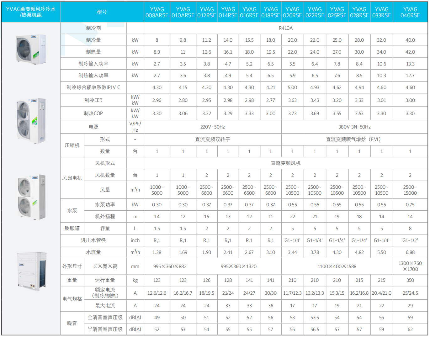 YVAG全变频风冷冷水/热泵机组:传承约克多年的水机产品设计及应用经验,采用直流变频喷气增焓压缩机以及先进的变频驱动技术,实现了全负荷以及部分负荷性能的超越;专属的智能控制系统,轻松掌握,随时掌控家居冷暖健康,是专为**用户全新打造的一款家用空调**产品。