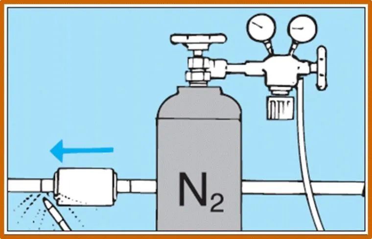 2、管道的恒压测试必须采用氮气,绝不可采用氧气或其他气体。由于氟利昂R22的压力会随气温的变化而改变,因此以氟利昂R22作保压测试不能反映系统是否密封,应避免采用。