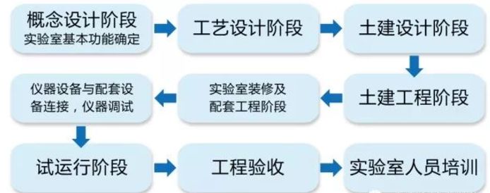 正确的实验室建设流程是首先考虑实验室的功能定位,结合实验室的工艺要求进行实验室的建筑设计;对于常规的实验建筑,也可以按照通用性良好的尺度现行进行建筑设计。这就要求建设单位咨询对实验室设计和建造具有丰富经验的专业机构。专业机构在项目建筑设计阶段的及时介入,将对实验建筑,尤其是建筑内部实验室的科学设计起到良好的作用,可避免更多的合规性、科学性、适用性、实用性方面的问题。此外,如有可能最好邀请建筑设计师一起参观其他单位的实验室以加深其认识,这将有利于建筑设计能够更大程度地符合实验室建设的要求。